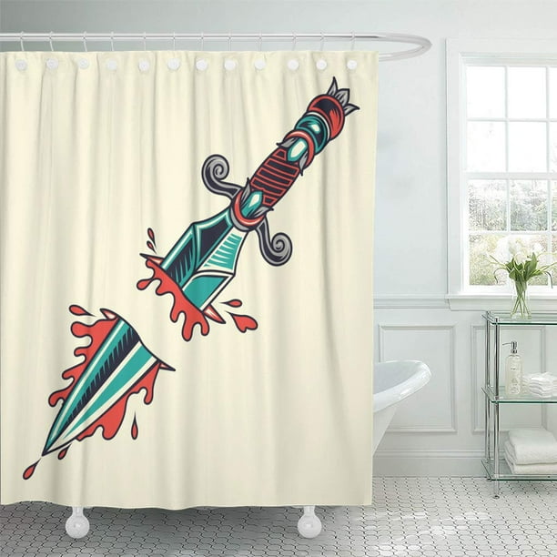 Cynlon Sword Traditional Old School Dagger Tattoo Stab Ink Retro Bathroom Decor Bath Shower Curtain 60x72 Inch Walmart Com